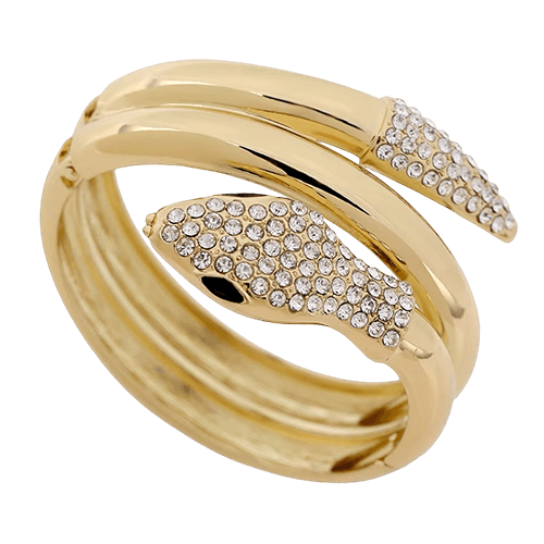Vergulde, zwart geëmailleerde klap-armband met twee panterkoppen.