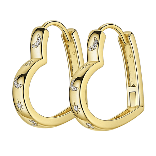 De vergulde hartvormige bedels, 24 x 18 mm. hebben een “shaker”-compartiment gevuld met heldere steentjes