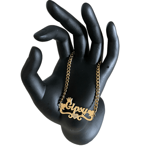 RVS Verguld verstelbaar enkelbandje, tot 25 cm, gourmet-schakel, “Gipsy” in sierletters