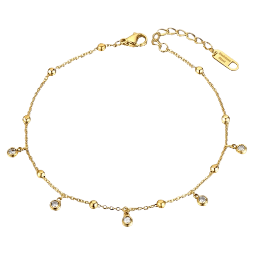 Het ontwerp wordt gekenmerkt door een schattig verguld hartje dat harmonieus wordt afgewisseld met verfijnde vergulde bolletjes. Deze combinatie geeft het enkelbandje een tijdloze en romantische uitstraling.