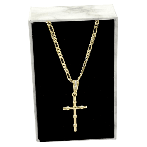 De kruishanger  en bloem zijn ingelegd met facet geslepen zirconia steentjes