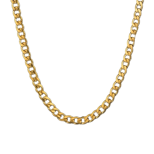 Vegulde RVS halsketting, Koningsschakel, verkrijgbaar in verschillende lengte en breedtes: