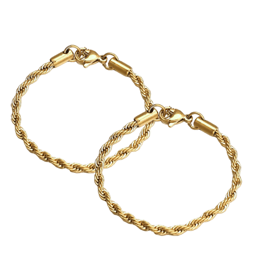 Vergulde RVS bedel- schakelarmband, lengte 20 cm x breedte 8 mm. met 5 open (15 x 15 mm.) en 5 dichte ( 10 x 10 mm.) hartjes .