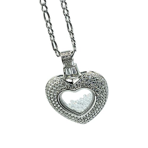 Lood- en nikkelvrije harthanger, 30 x 30 mm, met zirconia en losse heldere steentjes.