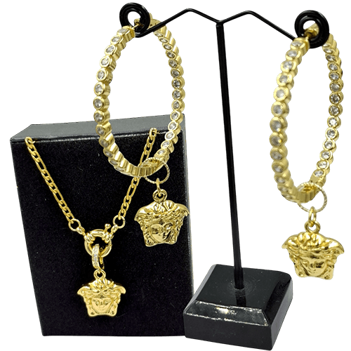 Voeg een vleugje romantiek en schittering toe aan elke outfit met deze prachtige, 3-delige vergulde sieradenset. De set, bestaande uit een halsketting, oorbellen en een armband, is het perfecte accessoire voor speciale gelegenheden of als een luxueus cadeau voor een dierbare.