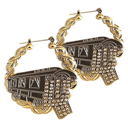 Aan de binnenzijde zijn verguld zilveren wielen geplaatst, diameter 14 mm. De rand en het midden zijn ingelegd met heldere zirconia steentjes.